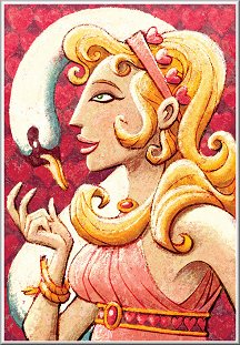 The poets liked to paint an idealistic picture of Aphrodite, filled with beauty and happiness - The winds flee before her and the storm clouds; sweet flowers embroider the earth; the waves of the sea laugh; she moves in radiant light. Without her there is no joy nor loveliness anywhere. Aphrodite wasn't always sweet. When it suited her, she could be rather malicious and treacherous, and her influence over men was often deadly. She could turn the heart of any man to longing and passion, and it was said that when she spoke, even Zeus listened... The lame god of the forge and metalworking, Hephaestus, was her husband, although he was the only god to be physically ugly...Needless to say, Hephaestus considered himself the luckiest god on Olympus.