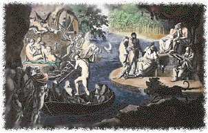that in love and sleep we may learn to trust and then Odysseus persuaded her to free his comrades. Circe then smeared their pig heads with a salve and they became men again, some say even more handsome and taller than before. And from that moment there was friendship between Circe and Odysseus' crew, and charmed by the hospitality of the witch they stayed with her for a whole year. When the year had passed and Odysseus beseeched her to keep her promise and send him home to Ithaca, Circe told him that before she could do that, he would have to make a journey to the Underworld and consult the soul of the seer Tiresias about the outcome of his wanderings. And this was the first time a ship sailed to Hades, blown by the North Wind (Boreas), and Odysseus was given by Circe all the instructions necessary to reach the Underworld, where to beach his boat, and how to proceed in order to meet the souls of the dead. Returning from Hades the ship of Odysseus put in at Aeaea once more, where the whole crew sat with Circe and feasted on a rich supply of meat and wine. At night Odysseus and Circe retired and, before his departure the day after, she described for him the dangers that still awaited, instructing him as how to avoid the SIRENS and still listen to their enchanting song, and warning him, among other things, about the rocks that are the abode of Scylla & Charybdis. Circe, they say, had children by Odysseus, perhaps too many considering the time he spent in Aeaea, but goddesses, and even witches, may perform miracles. When Telegonus, who others call son of Calypso, learned from his mother Circe that he was a son of Odysseus, he sailed in search of his father. Having come to Ithaca, he drove away some cattle, and when Odysseus defended them, Telegonus wounded him with a spear and Odysseus died of the wound. Telegonus bitterly lamented what he had done, but it is said that he was made immortal by Circe and sent to the Islands of the Blest together with Penelope. Faunus was another child of Circe. This is the Half-goat god who was king of Latium and that is sometimes identified with Pan or with a Satyr. Some say he was a son of Picus & Canens, the daughter of Janus and the Nymph Venilia.