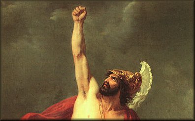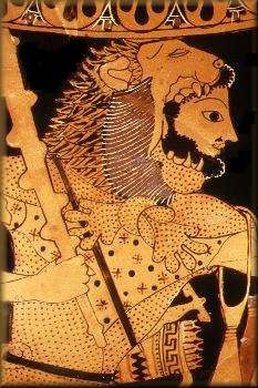 Only one of Thespius's daughters declined Herc's stud services and she remained a virgin until her death, serving as his priestess at Thespiae. Still, Heracles didn't do too shabbily in the sire department, having begotten fifty-one sons on her sisters. You see, Procris, the eldest, and first to give Hercules the famous Thespian "welcome home, sailor" treatment, had twins. So did the youngest sister. Fifty-one sons. Made for one heck of a Father's Day party, let me tell ya! So once Heracles performed his Thespian civic duty, he cornered the lion and slew it with ease, dressing himself in its pelts and wearing the gaping jaws for a helmet. Minutes later, the first Grecian urns featuring a lion-skin clad Hercules were available for sale at the Thespian flea market. Herc was an entrepreneur's dream, and the Greek merchants were damned if they missed a chance to make a drachma. (I can still hear the heated arguments over this fashion statement, involving a bunch of ancient inebriated literary types, after hours down at Thanasi's Olympus Greek Restaurant: Diodorus Siculus: "Pausanias, I swear that during evolution, your ancestors were in the control group. Heracles wore the pelt of the Nemean Lion and that's that! What have you been smoking, man?" Pausanias: "Dio my friend, if one stands close enough to you, one can hear the ocean. My unimpeachable sources tell me that Herc adorned himself with the skin of the Cithaeron Lion. Now be a sport and admit defeat." Apollodorus: "You're both dead wrong, and I ain't lion! Hercules wore the pelt of a beast which he killed at Teumessus - you know, that hick town near Thebes. It was Alcathous who slaughtered the Cithaeron Lion. The way you two carry on, it's hard to believe that you actually beat out 100,000 other sperm!" Diodorus Siculus: "What's sperm?" Pausanias: "What's 100,000?" Apollodorus: "I rest my case." It took grandpa Hesiod to bring order to the chaos: Hesiod: "Boys, boys, you keep making mountains out of molehills, you'll end up with piles. Before y'all get so huffity, blow off some esteem, will ya? "Heracles wore all three pelts. You don't actually expect the world's greatest hero to own only one change of clothing, do you? Hello? Anybody home? Just because you slobs never wash your clothes doesn't mean Herc isn't into personal hygiene. Of course he has more than one pelt, by Jove!" Grandpa Hesiod. Like I said before, cooler than the other side of the pillow... THE MINYAN HERALDS Thus Hercules left Mount Helicon a man, his first pelt under his belt, in a manner of speaking. The walk out of Thespiae was precious: all the inhabitants lined the streets, singing the praises of my nephew, for overnight the price of beef had plummeted. The fifty daughters of King Thespius were last, and it was pathetic the way they flung themselves at my nephew, begging him to at least stay another night. My nephew looked real relieved once we got out of town, breaking into a huge grin. I asked him what's up and he replied that when he saw the King's daughters coming at him en masse, he initially thought they were all rushing to slap him with multiple paternity suits. "First time I knew the feeling of fear, unc!" he told me. "I'm just a poor Greek son of Zeus, with no steady means of income save the odd menial task. I can't afford to support myself, let alone fifty-one sons!" I see your point, Herc. Next time, please pack the Trojans. Didn't your father Zeus ever warn you against sexual promiscuity? No more than four hours out of Thespiae, we fell in with a travelling group of heralds, on their way to collect a Theban tribute. You see, some years before, during Poseidon's festival at Onchestus, the Minyan King Clymentus had been mortally wounded by a flung stone. Nobody remembers what petty issue brought on the spat, but the Theban king's charioteer tossed the rock projectile in anger and it was Clymentus no more. Clymentus lamentus, if you will... As he lay dying, Clymentus ordered his sons to avenge him. The eldest son, Erginus, mustered an army, attacked the Thebans, and utterly trounced them. They then swore oaths that under the terms of a peace treaty, the Thebans would pay Erginus an annual tribute of one hundred cattle. If the cattle were delivered for twenty years - free of mad-cow disease, if you were to read the fine print - the death of Clymentus would be avenged. Fair enough. I'm not quite convinced that two thousand head of cattle compensates for the loss of King, husband and father, but what do I know. The Thebans paid the annual tribute and banned stones from the kingdom. Anyone caught with rocks would henceforth be stoned to death. Since we were all heading to Thebes, and the heralds were travelling first class, we joined their party. Things began to get ugly when Heracles inquired as to the nature of the heralds' business in Thebes. "We have come once more to remind the Thebans of Erginus's clemency in not lopping off the ears, nose, and hands of every man in the city," scornfully replied the head herald. "As long as they keep handing over the cattle, we'll have no beef with them. Miss one payment, however, and it's face-off time!" Herc and I exchanged quick glances, and I marveled at his self control. That's his home town they're laughing about, yet this gentler, kinder Heracles maintained his cool. We didn't say a word, for an oath is an oath, after all. But the head herald wouldn't let it be. "You guys look like Thebans," he observed sarcastically. "It would be a shame indeed to mar such handsome features." Turning to his companions, he added, "What says you, boys, ain't these two Thebans cute? They must be Thebans, for they're so meek and mute. Well, if they ain't not going to use their tongues, maybe we should cut them off too! Har, har!" Oh my. Before I could point out to the head herald that double negatives are a no-no, my nephew unsheathed the mighty sword given to him a few weeks earlier by Hermes, at his eighteenth birthday bash. "Do
