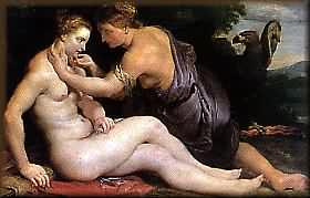 HONK IF YOU'VE SLEPT WITH ZEUS! My godfather Zeus was a pervert. There, I've said it, and may he strike me dead with a thunderbolt if I'm lying! But there's no avoiding the fact that, when he was young, the king of the Olympians "...lacked restraint in the gratification of his various lusts," to put it mildly. Why don't you send the little ones to bed, pour yourself a cup of Nectar, and snuggle up for a bit, while I tell you about the amorous fables and foibles of Zeus, the king of the Casanovas...I'll try to keep it clean, but I'm not promising anything. After overthrowing papa Cronus, kicking some Giant and Titan butt, and splitting the spoils three ways with his siblings Hades and Poseidon (see Part I), Zeus set himself up as the unchallenged Numero Uno. But too much power corrupts, and there was nobody to restrain young Zeus. He embarked on a journey of seduction and frenzy that thundered around the Universe...