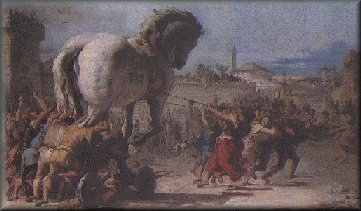 BUNCH OF ODYSSEUS FACTS Odysseus was king of Ithaca and leader of the Cephallenians against Troy. He invented the construction of the WOODEN HORSE as a stratagem to take Troy. As other ACHAEAN LEADERS Odysseus was confronted, after the sack of Troy with a hard return and sedition at home. On his return to Ithaca he killed the many SUITORS OF PENELOPE, who had been wasting his property during his twenty years long absence, and for that massacre he was condemned to exile by King Neoptolemus of Epirus. The Oath of Tyndareus. When Helen was to be married many suitors came from all Greece wishing to win her hand, and among them Odysseus. King Tyndareus, Helen's father or stepfather, feared that the preference of one might provoke the enmity of the others, and so Odysseus promised that, if Tyndareus would help him to win the hand of Penelope, he would suggest a way by which there would be no dispute among the suitors. When Tyndareus agreed, promising to help him, Odysseus told him to exact an oath from all the SUITORS OF HELEN that they would defend the favoured bridegroom against any wrong that might be done him in respect of his marriage. So when Menelaus won the hand of Helen, all accepted it in virtue of the oath, and thus Odysseus married Penelope, who was the prize for such a wise advice. But later, when the seducer Paris took Helen from King Menelaus of Sparta, the kings of Greece, being bound by the Oath of Tyndareus, were forced, summoned by Menelaus and his brother Agamemnon, to join the alliance which sailed from Aulis to Troy in order to demand the restoration of Helen and the property, either peacefully or by force. The Oath against Odysseus. Thanks to the idea of the oath Odysseus won Penelope, but when war threatened against Troy, the same oath played against him bounding him to join the coalition that was gathering at Aulis. And as there are those who prefer quiet life at home to any glory that war might give, Odysseus, being one of those, was reluctant to join the army. Conflict with Palamedes. It was then that Palamedes, the inventor of the dice, came to Ithaca to persuade Odysseus to join the expedition against Troy. But Odysseus, not wishing to go to the war, feigned madness. Palamedes, then, snatching Odysseus' son Telemachus from Penelope's bosom, drew his sword as if he would kill him, and fearing for the life of the child, Odysseus confessed that his madness was pretended, and he consented to go to war. Death of Palamedes. Because Palamedes, through his smart move, forced Odysseus to go to war, he was later stoned to death through the machinations of his victim Odysseus. For when a Trojan was made prisoner, Odysseus compelled him to write a letter of treasonable purport which seemed to be sent by King Priam to Palamedes; and having buried gold in the quarters of Palamedes, he dropped the letter in the camp. Agamemnon read the letter, found the gold, and delivered up Palamedes to be stoned as a traitor. However, it has also been said that Palamedes was drowned by Odysseus and Diomedes, while he was fishing. Embassies. Odysseus was part of the embassy which demanded the restoration of Helen and the property from the Trojans, and he also was among them who came to beg Achilles to return to the fight, promising him the seven tripods, the seven women, the seven cities and all the other gifts, including Achilles' sweetheart Briseis, that Agamemnon offered Achilles, should he left his wrath aside. Fetches the bow of Heracles, which Philoctetes now owns. After the death of Achilles and Hector Troy still could not be taken. So new prophecies were uttered concerning the fall of Troy, and the seer Calchas prophesied to the Achaeans that Troy could not be taken unless they had the bow and arrows of Heracles fighting on their side. On hearing that, Odysseus and Diomedes (or some say Neoptolemus) went to Philoctetes in Lemnos, and having by craft got possession of the bow, they persuaded him to sail to Troy. Helenus is forced to tell the Achaeans how Troy can be taken. And then Calchas said that only Helenus, the Trojan seer, knew the oracles that protected the city. So Odysseus captured him and, having brought him to the camp, the seer disclosed the oracles, and following them Odysseus brought Neoptolemus to Troy, and stole the Palladium from the city. Dispute with Ajax. When Achilles died his arms were offered as a prize to the bravest, and Ajax and Odysseus competed for them. Odysseus was preferred by the judges, and, as a revenge, Ajax planned an attack on his own army. But Athena drove him mad, and he slaughtered the cattle with the herdsmen, taking them for the Achaeans. And when he came to his senses he slew himself. The WOODEN HORSE. It was not before Odysseus invented the WOODEN HORSE that Troy could be taken. He is also found among the warriors that hid inside the horse. The Ciconians After the war Odysseus wandered for ten years. He went first to the land of the Ciconians in Thrace where he pillaged the city of Ismarus, not sparing anyone except a priest of Apollo called Maron, son of Evanthes, who reigned in Marioneia. Lotus-eaters After the Ciconians he sailed to the land of the Lotus-eaters. This Lotus was a sweet fruit which caused him who tasted it to forget everything. And as some of the crew ate from this fruit Odysseus had to force them back to the ships, for those who tasted the fruit preferred to stay with the lotus-eaters forgetting everything about their way back home. Nobody. And later he sailed to the land of the CYCLOPES and there he and his men were trapped by the cannibal Cyclops Polyphemus, who promised Odysseus to eat him last as a reward for the wine Odysseus had given him. But when the Cyclops, being drunk, was asleep Odysseus blinded his single eye. When Polyphemus saw himself blind, which is easier than it sounds, he cried to the other CYCLOPES for help. But when they came and asked who was hurting him, Polyphemus told them" Nobody", because Odysseus