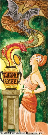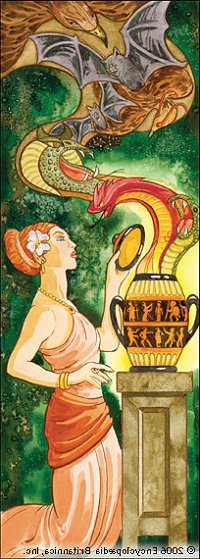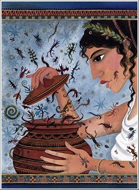 ![]() WELCOME TO MYTH MAN'S AWARD WINNING HOMEWORK HELP PANDORA - MYTHOLOGY'S FIRST WOMAN "...the woman opened up the cask, And scattered pains and evils among men." --Works and Days, Hesiod |