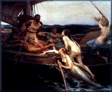the story of Odysseus (Ulysses) and the Sirens Ulysses seemed to have forgotten his native land, and to have reconciled himself to an inglorious life of ease and pleasure. At length his companions recalled him to nobler sentiments, and he received their admonition gratefully. Circe aided their departure, and instructed them how to pass safely by the coast of the Sirens. The Sirens were sea-nymphs who had the power of charming by their song all who heard them, so that the unhappy mariners were irresistibly impelled to cast themselves into the sea to their destruction. Circe directed Ulysses to fill the ears of his seamen with wax, so that they should not hear the strain; and to cause himself to be bound to the mast, and his people to be strictly enjoined, whatever he might say or do, by no means to release him till they should have passed the Sirens' island. Ulysses obeyed these directions. He filled the ears of his people with wax, and suffered them to bind him with cords firmly to the mast. As they approached the Sirens' island, the sea was calm, and over the waters came the notes of music so ravishing and attractive that Ulysses struggled to get loose, and by cries and signs to his people begged to be released; but they, obedient to his previous orders, sprang forward and bound him still faster. They held on their course, and the music grew fainter till it ceased to be heard, when with joy Ulysses gave his companions the signal to unseal their ears, and they relieved him from his bonds.